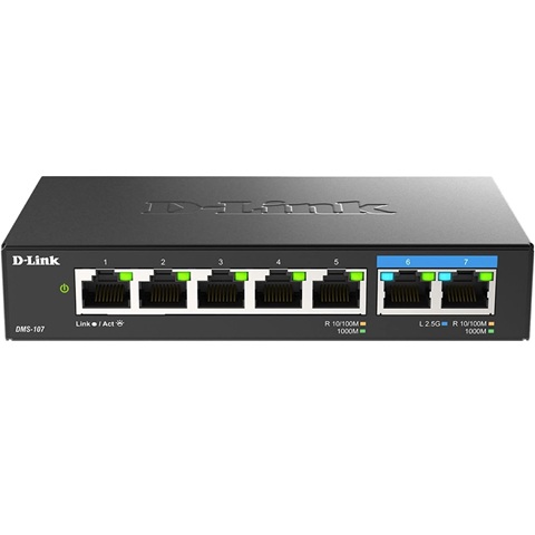 Amazon - D-Link 7-Port 2.5GB Unmanaged Gaming Switch with 2 x 2.5G, 5 x 10/100/1000 Mbps - Multi-Gig, Network, Fanless, Plug & Play (DMS-107) Black