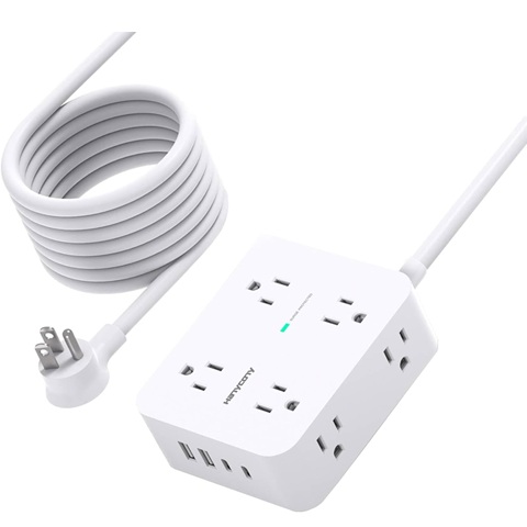 Amazon - One Beat 1680J 3 Side Power Strip Multi Plug Expander, Surge Protector, 5 Outlets Extender, 4 USB Ports (USB C), Wall Mount Charger, Outlet Splitter Adapter for Home, Travel, Office, ETL Listed, White