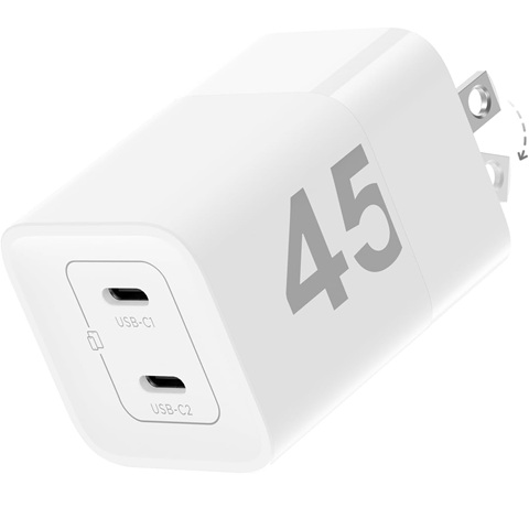 Amazon - wegear 45W USB C Charger, 2 Port GaN Fast Charging with PPS, Foldable Wall Charger Block for iPhone 17/16/15, iPad, Galaxy S25/S24, Pixel 10/9 (White)