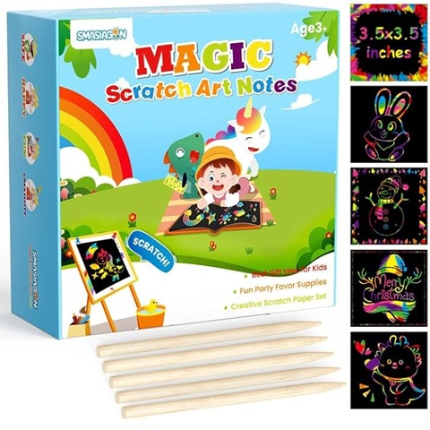 Amazon - Smasiagon Rainbow Scratch Arts for Kids - 125 Mini Craft Paper Notes - Art Supplies Party Favors Kids Toys Easter Basket Stuffers - Birthday Gift Classroom Game Toy for Girls Boys