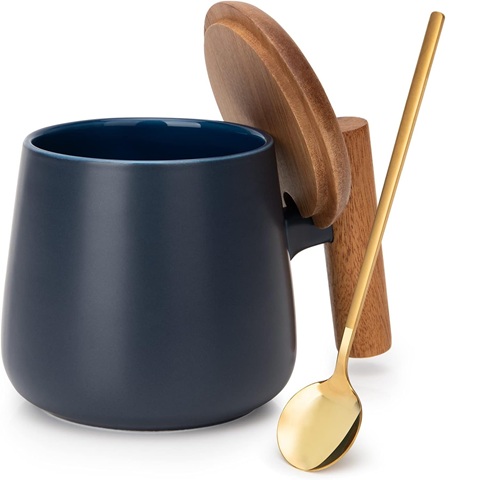Amazon - Coffee Mug, 14 Oz Ceramic Tea Mug with Lid and Coffee Spoon for Latte, Cappuccino, Cocoa, Mocha, Fathers Day, Birthday Gifts, House Warming Gifts New Home, 1 Pack (Blue)