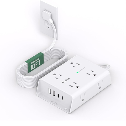 Amazon - 6 Ft Surge Protector Power Strip - 8 Widely Outlets with 4 USB Ports, 3 Side Outlet Extender with 6 Feet Extension Cord, Flat Plug, Wall Mount, Desk USB Charging Station, ETL,White