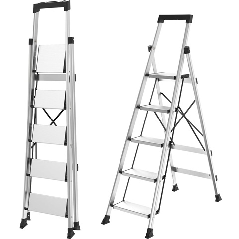 Amazon - HBtower 5 Aluminum Step Ladder, Strudy Ladders for Home with Tool Tray,... :$89.99 ($119.99)