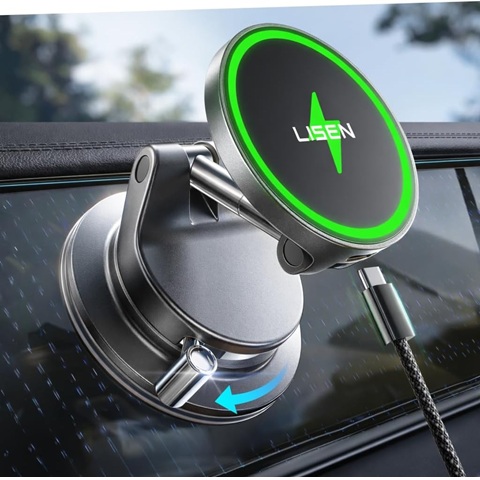 Amazon - LISEN 15W Magsafe Car Mount Charger, Magnetic Wireless Car Charger, Suction Phone Mount, Vacuum Magnetic Phone Holder for Car Mount for iPhone 17 Pro Max 16 15 14 13 12, Samsung S26/S25, Pixel 10 Pro