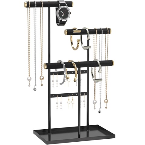 Amazon - Jewelry Organizer Holder,Small Necklace and Bracelet Storage Stand,Jewelry Earring and Ring Hanging Display Rack for Women,Necklace Hanger Tree for Vendors (Black)