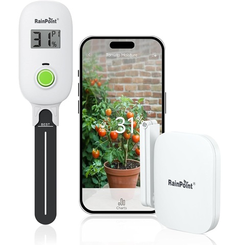 Amazon - RAINPOINT Smart Digital Wireless Plant Moisture Meter Houseplants Indoor WiFi Hub Kit with Low/High Moisture Alert,Real-time Monitor Hygrometer Sensor Outdoor Gardening Push Notification&Email