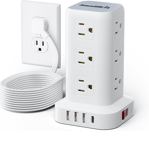Amazon - Extension Cord with Multiple Outlets, SMALLRT Flat Plug Surge Protector Power Strip Tower, Power Bars with USB 12 AC Outlets, 16.5FT Ultra Thin Extension Cord for Home Office, Overload Protection