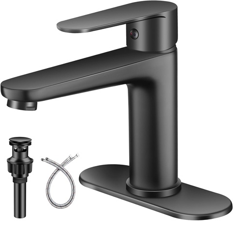 Amazon - Black Bathroom Faucet Single Hole Single Handle 304 Stainless Steel Modern Sink Commercial RV Faucet with Pop-Up Waste for 1 or 3 Hole 4 Inch Vanity Bathroom Sinks