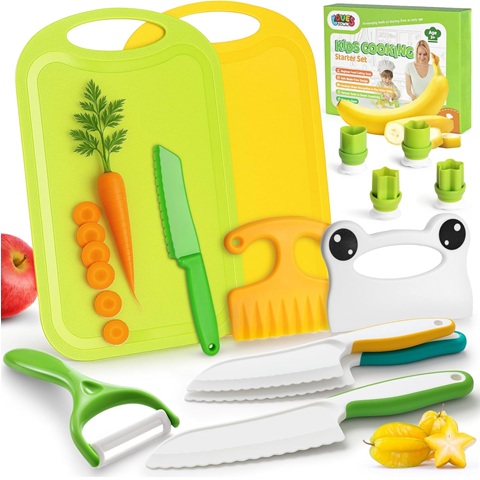Amazon - LovesTown 13PCS Kids Cooking Sets Real, Montessori Kitchen Toys for Toddler Kitchen Playset with Safe Knives Crinkle Cutter Gifts for 3-8