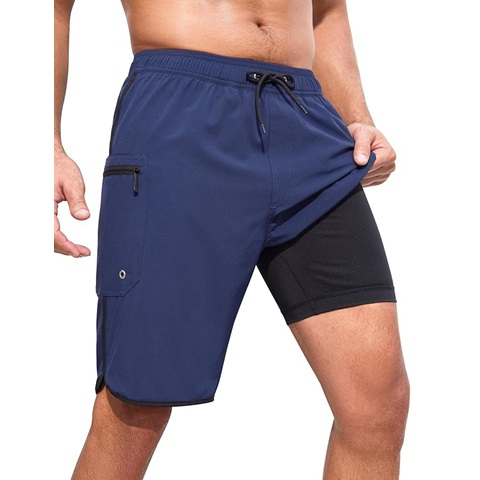Amazon - SILKWORLD Mens Swim Trunks with Compression Liner 9 Inch Long Bathing Suit 2 in 1 Beach Quick Dry Shorts with Pockets