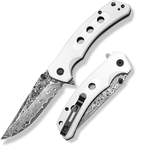 Amazon - CVLIFE Damascus Pocket Knife for Men, 3.26'' EDC Folding Knife Forged with 66-Layer VG10 Steel, Smooth Flipper Open Pocket Knives with G10 Handle for Camping Hiking Everyday Carry, White