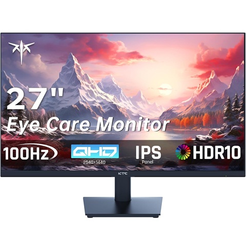Amazon - KTC 27 Inch QHD Computer Monitor, 2K 100Hz IPS Gaming Monitor, 1440P Frameless Eye Care PC Office Monitor with HDMI/DP, FreeSync & G-Sync, HDR10, VESA, Tilt Adjustable