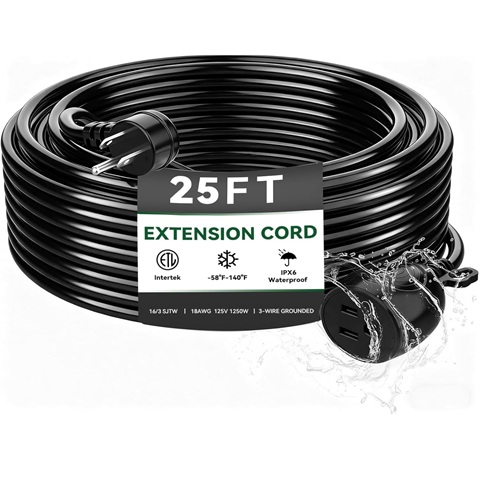 Amazon - Blackcow Outdoor Power Extension Cord,25 Ft,IPX6 Waterproof, Cold Weather & Fireproof, Heavy Duty 3 Prong Cable,18AWG 125V 10A,FCC/ETL Certified for Outdoor/Indoor Use