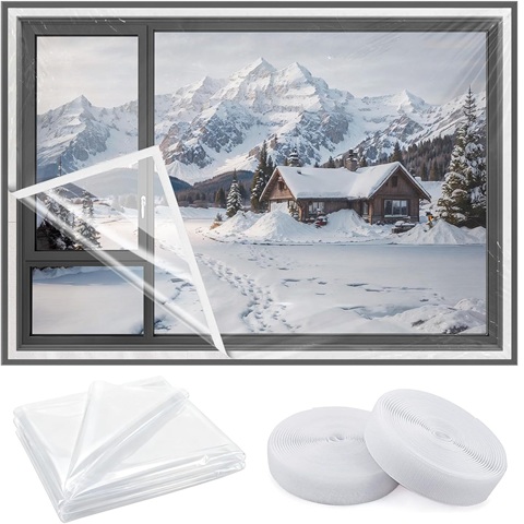 Amazon - Heavy Duty Window Insulation Kit for Winter - 75 in x 79 in Clear Plastic 180㎛ Thick Shrink Film on Windows and Patio Doors, Reusable Storm Window Kit for Sliding Doors & Large Windows