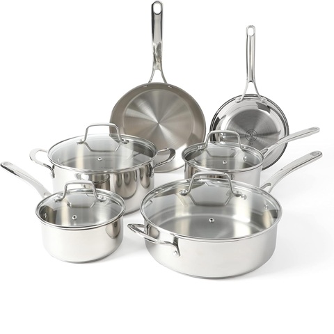 Amazon - 8 Inch Stainless Steel Pan, 5-Ply Clad Base for Even Heating, 800℉ Oven Safe... :$87.20 ($129.00)