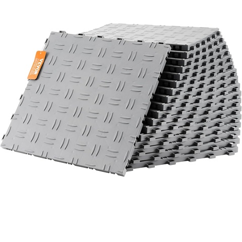 Amazon - VEVOR Garage Tiles Interlocking, 12 x 12 x 0.53 inch 50 Pack Garage Floor Covering Tiles, Non-Slip Double-Sided Texture Garage Flooring Tiles, for Garages, Basements, Repair Shops, Silver