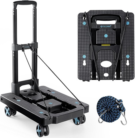 Amazon - Folding Hand Trucks, Heavy Duty Dolly Cart with 6 Wheels & 2 Elastic Ropes, Foldable & Ideal for Luggage, Travel, Moving, Shopping, Office Use, Hold Up to 500 LB, Easy to Store, Black