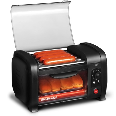 Amazon - Elite Gourmet EHD-051B Hot Dog Toaster Oven, 30-Min Timer, Stainless Steel Heat Rollers Bake & Crumb Tray, World Series Baseball, 4 Bun Capacity, Black
