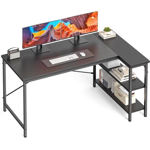 Amazon - DUMOS L Shaped Desk 55 Inch Computer Desk Gaming Furniture Corner Desks Home Office PC Table with Reversible Storage Shelves for Writing Working Study Bedroom Dorm, Modern Black