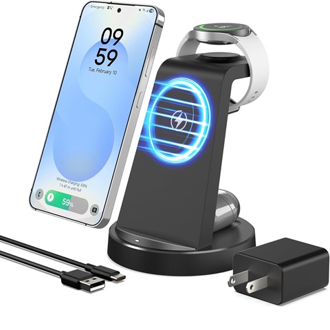 Amazon - Wireless Charger for Samsung: 3 in 1 Charging Station for Samsung S26/S25/S24/S23/S22/S21, Note 20/10, Z Fold 6/5, Galaxy Buds 4/3/2 Pro, Galaxy Watch Ultra/8/7/6/5-Android & iPhone 15W Charging Dock