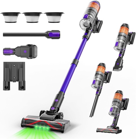 Amazon - Cordless Vacuum Cleaner,500W 40KPa 60Mins Vacuum Cleaners for Home,Powerful Stick Vacuum With Green Light,Anti-tangle Wireless Vacumm, Rechargeable Vacuum for Pet Hair/Carpet/Hardwood Floor,Purple