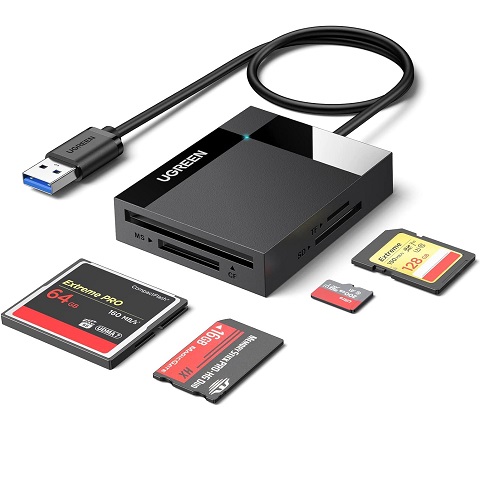 Amazon - UGREEN SD Card Reader USB 3.0 Card Hub Adapter 5Gbps Read 4 Cards Simultaneously CF, CFI, TF, SDXC, SDHC, SD, MMC, Micro SDXC, Micro SD, Micro SDHC, MS, UHS-I (Black)