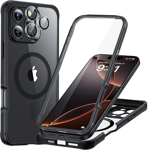Amazon - ESR for iPhone 16 Pro Max Case, Compatible with MagSafe, Full-Body Military-Grade Drop Proof Case with Built-in 9H+ Tempered Glass Screen Protector, Armor Series, Clear Black