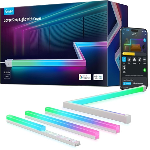 Amazon - Govee RGBIC LED Strip Lights 32.8ft with Covers, Smart Lights Work with Alexa and Google Assistant, LED Diffuser Channel with LED Lights for Bedroom, Skirting Lines, Studio, Cabinet