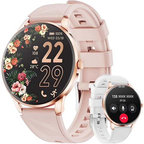 Amazon - Smart Watch for Women Android/iPhone, 1.32'' AMOLED Screen Smartwatch with Answer/Make Call/Fitness Tracker/Heart Rate/SpO2/Sleep Monitor/110+ Sport Modes, 2 Bands