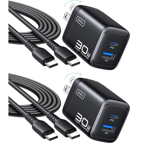 Amazon - INIU for iPhone 17 Charger, 30W 2-Pack Type C Charger Fast Charging, Foldable USB C Charging Block with Cable for iPhone 17 16 Pro Max, MacBook Air 13 M4, Samsung S25, Photographers, Outdoor, Travel