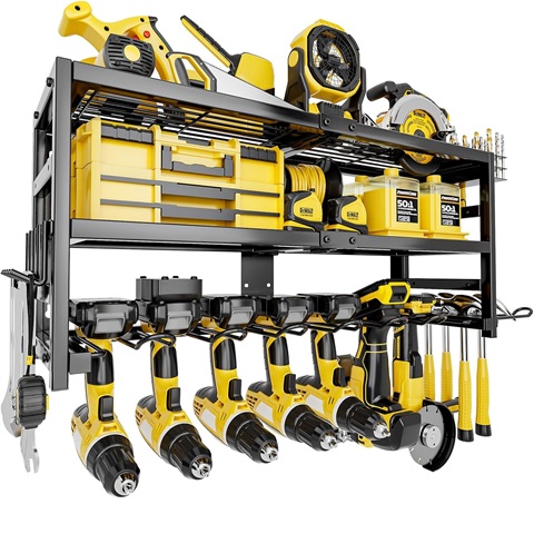Amazon - Power Tool Organizer Wall Mount Heavy Duty 320 lbs, 3 Layers Storage Rack with 9 Drill Holders & Battery Storage, cordless tool organizer for Garage, Workshop & Tool Room
