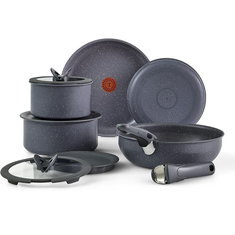 Amazon - T-fal Ingenio Essentials Cookware Set with Detachable/Removable Handle 11 Piece, Granite Titanium Non Stick, Oven Broiler Safe 500F, Stackable, Pots and Pans Set, Frying Pans, Dishwasher Safe, Gray
