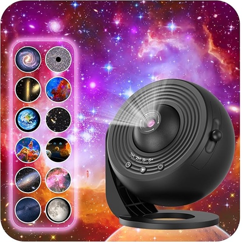 Amazon - Galaxy Projector for Bedroom, HD Image Star Projector Galaxy Light Adjustable Knob, 13 Film Discs Planetarium Projector for Kids, 360° Rotating 1/2h Timer Simple 3-Button Control