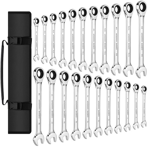Amazon - KOOPOOL Ratchet Wrenches Set, 22-Piece Combination Wrench Set, Metric & SAE, Anti-Slip Grip, CR-V Steel, 1/4'' to 3/4'' & 6mm to 18mm, Portable Oxford Pouch Organizer