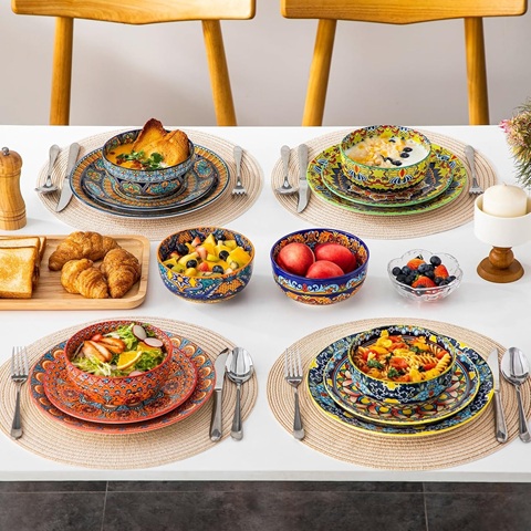 Amazon - vancasso Cereal Bowls Set of 6, Porcelain Bowls for Eating, 28 oz Colorful Soup Bowls, Bohemian Ceramic Bowls for Salad, Fruit, Pasta, Microwave & Dishwasher Safe Bowls Set