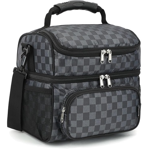 Amazon - FlowFly Double Layer Cooler Insulated Lunch Bag Adult Lunch Box Large Tote Bag for Men, Women, With Adjustable Strap,Front Pocket and Dual Large Mesh Side Pockets