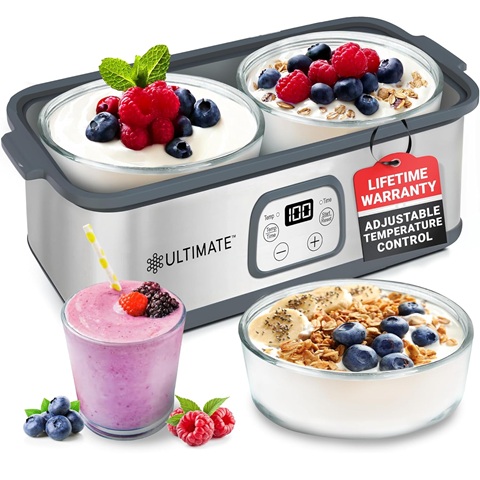 Amazon - Ultimate Probiotic Yogurt Maker with Adjustable Time & Temp Control - Make Trillions of Live Probiotics with Two 1-Quart Containers for Larger Batches - Greek Yogurt Maker - ULTIMATE LIFETIME WARRANTY