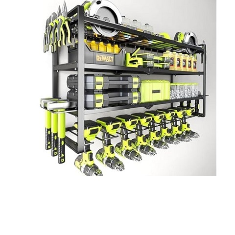 Woot - Large Power Tool Organizer Wall Mount, Garage Storage Cordless Tool Organizer with Screwdriver Holder, Heavy Duty Metal Storage Rack with 8 Drill Holder 4 Layer