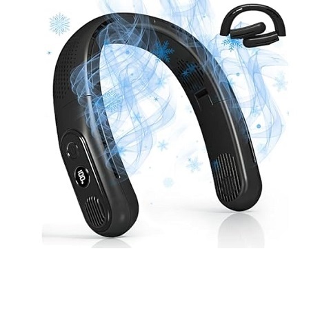 Woot - OLV Rechargeable 4 Turbo 6000mAh Portable Neck Fan - 360 Cooling Airflow, 3 Speeds, LED Battery Display, Foldable, Bladeless - Personal Fan for Work, Travel, Outdoor Activities