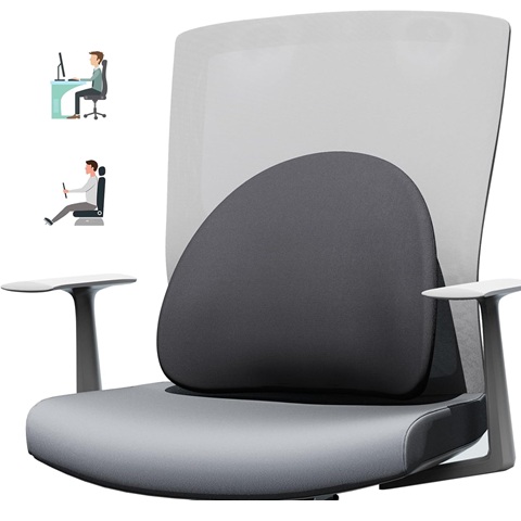 Amazon - Lumbar Support Pillow for Office Chair and Car with All-Season Adaptive Memory Foam, Ergonomic Back Support for Lower Back Pain Relief, Stay-Put Stain-Proof Silicone Grip (Black)