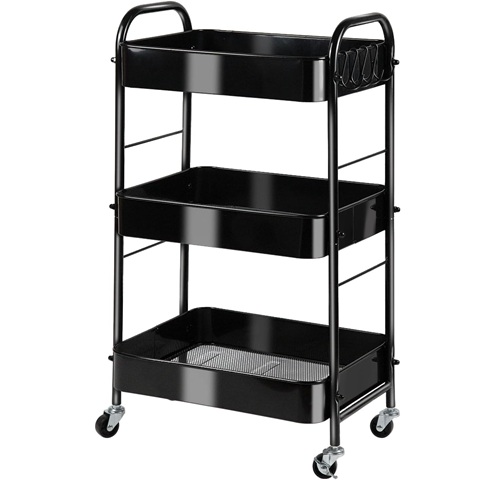 Amazon - 3-Tier Rolling Utility Cart with Stopper Caster Wheels and 4 Hooks, Easy Assembly, for Kitchen, Bathroom, Living Room, Office (17.7''L x 12.2''W x 29.1''H, Black)