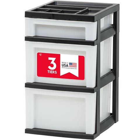 Amazon - IRIS USA Plastic Drawer Storage Organizer Rolling Cart, 3-Drawers, for Classroom Art Craft Supplies Dresser Closet Bathroom Laundry Room, Black/Pearl