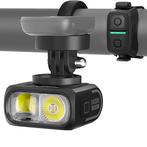 Amazon - Magicshine HORI1300S Bike Headlight, Compatible with Garmin/Wahoo, 1300 Lumens High & Low Beam Front Light, USB-C Rechargeable, IPX6 Waterproof for Night Riding and Urban Cycling