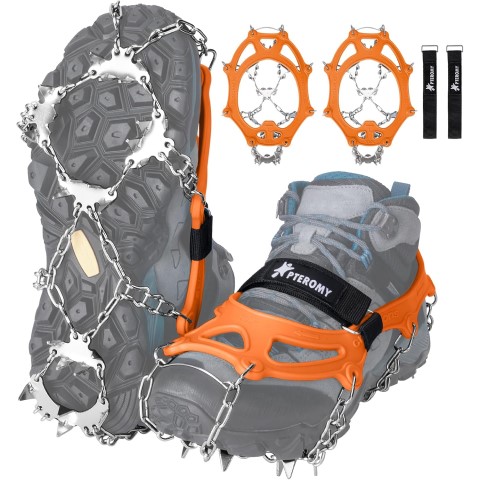 Amazon - PTEROMY Crampons for Hiking Boots with 24 Stainless Steel Spikes, Ice Cleats for Shoes and Boots