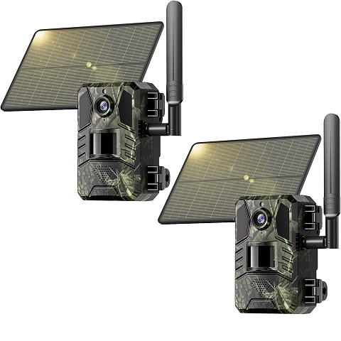 Amazon - Trail Camera, Cellular Trail Camera with Built-in SIM Card 4G Unlimited Data Plan 2k HD Live Streaming Game Cameras with Night Vision Motion Activated Waterproof IP66 4W Solar Panle Trail Cam