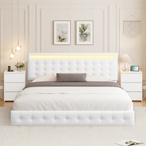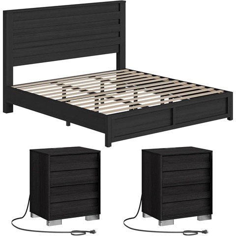 Wayfair -Louby Farmhouse 3 Piece Platform Bed And Nightstand Bedroom Set :$380.00 ($520.00)