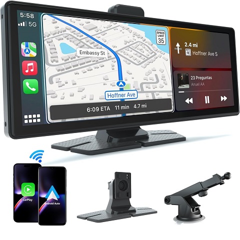 Amazon - 10.26'' HD Carplay Screen for Car, Portable Wireless Apple Android Auto Car Play Stereo Car Audio Receivers with Voice Control, Backup Camera, Mirror Link, Bluetooth, GPS Navigation