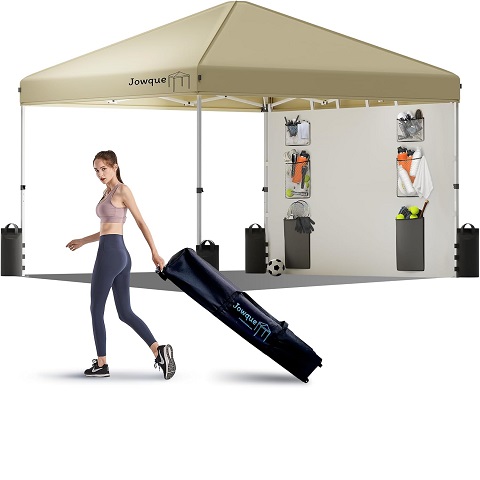 Amazon - 10x10 Pop Up Canopy Tent w/Side Wall, 6 Pockets, Easy Setup Instant Shade Canopy, 210D Silver Coated Fabric, Bonus 8 Stakes, 4 Weight Bags,Khaki