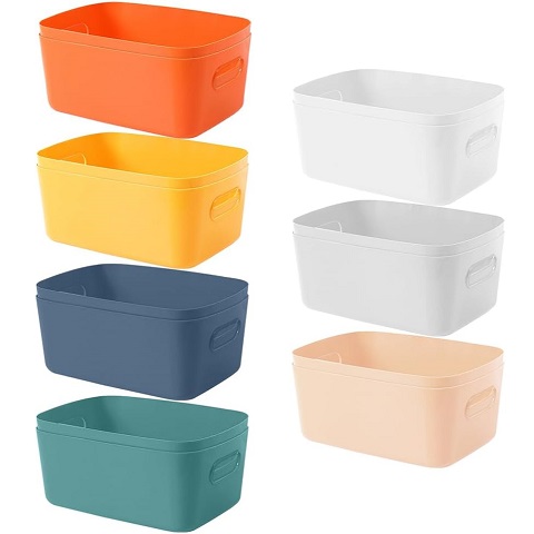 Amazon - 14 PCS Plastic Storage Bins Multiple Color with Handle Small Containers Pantry Baskets Desktop Toy Organizer Storage Cabinet Closet for Kitchen Bathroom Home Classroom Organization 7 Colors
