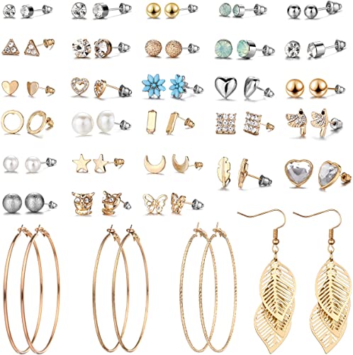 Amazon - 29 Pairs Assorted Multiple Stud Earrings set for Women Girls Simple Hoop earring set Girl's jewelry